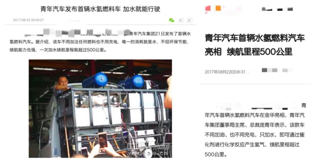 文章还称,在2017年年2月份的新能源汽车骗补风波中,工信部网站公布了对7家汽车公司行政处罚书,青年汽车就是这里面之一。青年汽车是真的没钱了,“水氢燃料车”项目或许是垂死挣扎的最后一击,能否骗到融资是关键。